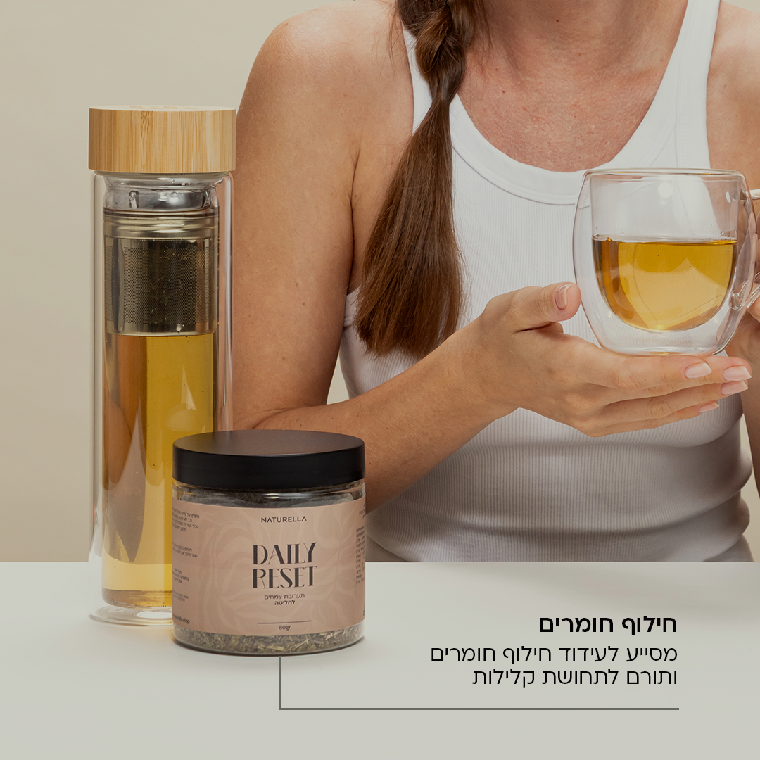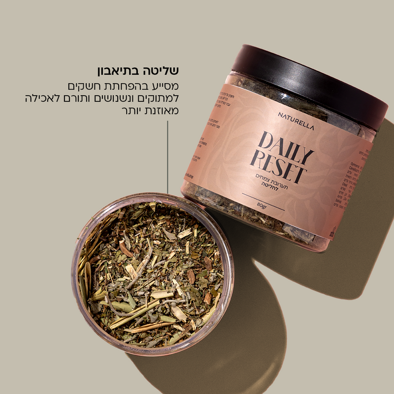 חליטת תה טבעית שתומכת בשליטה בחשקים, מקלה על תחושת נפיחות ומחזירה לגוף רוגע ואיזון יומיומי.